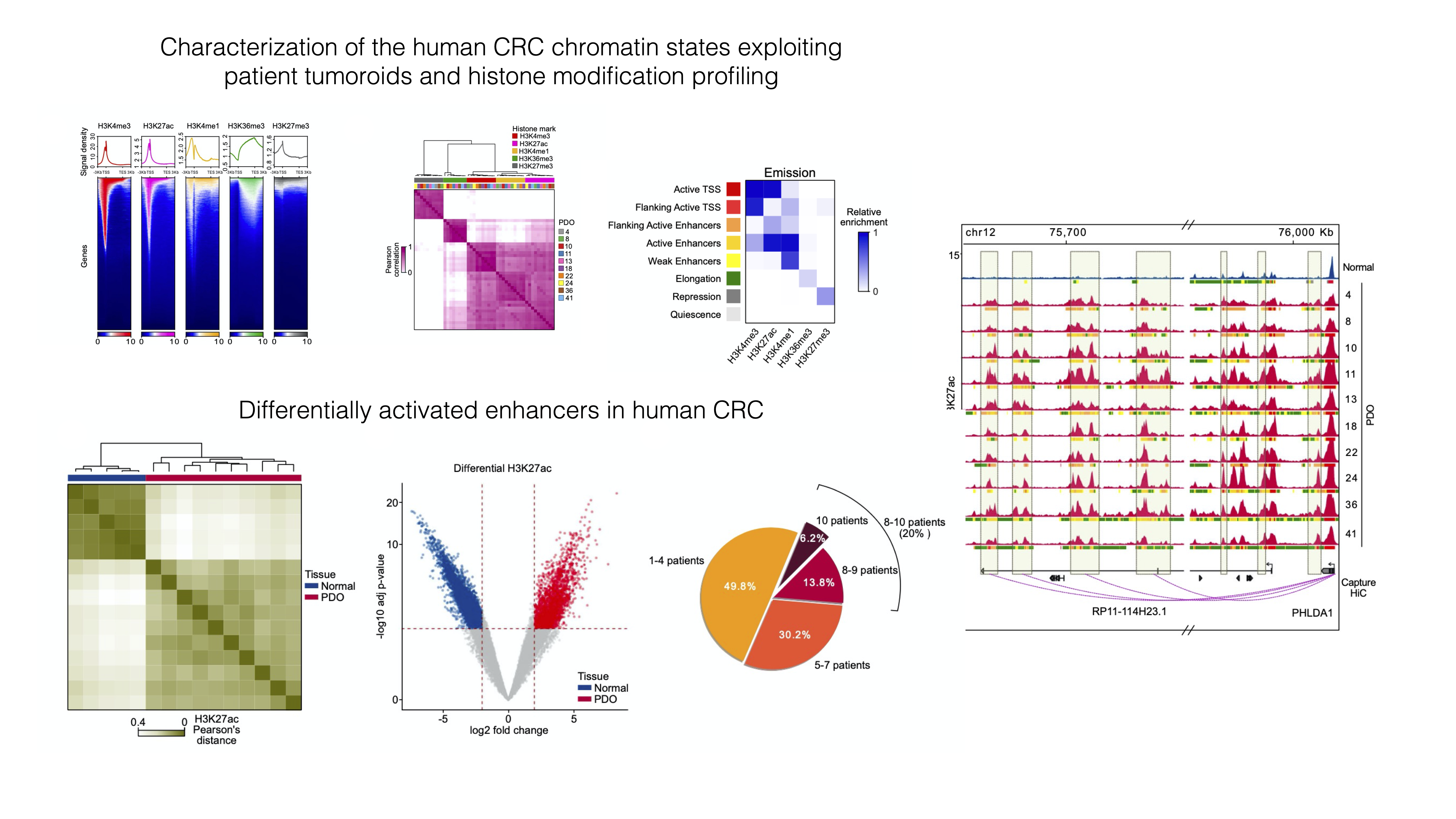 Its main object was to explore the way cancer cells use enhancers as opposed to nonmalignant cells, and we did so by using ChIP-seq on histone marks extensively. We generated organoid lines to model colorectal tumors, analyzed their epigenome, and compared it to the ATAC-seq-derived chromatin activity data of multiple other malignancies. We found a small number of enhancer sequences were conserved across all these types, and identified a transcription factor that linked them - the YAP/TAZ pair - that when perturbed would cause the death of malignant, but not normal, organoids, therefore representing a potential pan-cancer therapeutic target.
