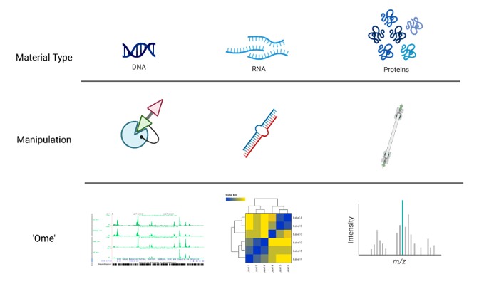 ‘Omics’ as disciplines work to answer questions regarding specific ‘omes’. These questions are enabled by omics experiments; in most cases, these will be sequencing- or mass-spectrometry based.
